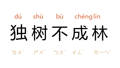 ⒈ 单独的一棵树不成为树林。比喻独自一人或孤立无群不能成事。也作「单木不成林」、「独木不林」、「独木不成林」。
