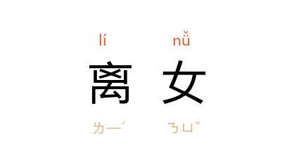 引《易·说卦》:“离为火,为日,为电,为中女。”唐 吕岩 《明胎息》诗:“炼成离女液,嚥尽坎男津。”唐 彭晓 《参同契明镜图诀诗》之一:“离女驾龙为木壻,坎男乘虎作金翁。”