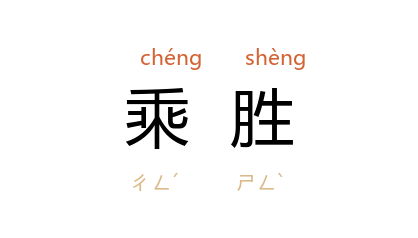 引《史记·孙子吴起列传》:“齐 因乘胜尽破其军,虏 魏 太子 申 以归。”《后汉书·宋俊传》:“乘胜逐北数十里,斩首万餘级。”《续资治通鉴·宋宁宗嘉定十一年》:“金 主欲乘胜来议和。”老舍 《正红旗下》三:“受了这个打击,大姐婆婆才不能不管我母亲叫亲家太太,而姑母也乘胜追击,郑重声明;她的丈夫(可能是 汉 人!)也作过二品官!”