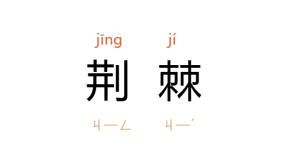⒈ 荆:荆条,无刺;棘,酸枣,有刺。两者常丛生为从莽。也泛指丛生于山野间的带棘小灌木。