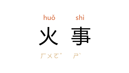 引《太平御览》卷八六八引 晋 周斐 《汝南先贤传》:“郭宪 从南郊含酒,东北三噀,云:‘ 齐 失火,以厌之。’后 齐 果上火事。”宋 黄庭坚 《戏简朱公武刘邦直田子平》诗之二:“君看 刘郎 最多智,昨者火事几焚巢。”