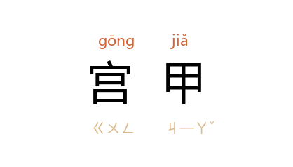 引《左传·文公元年》:“冬十月,﹝ 商臣 ﹞以宫甲围 成王。”《旧唐书·隐太子建成传》:“建成 乃私召四方驍勇,并募 长安 恶少年二千餘人,畜为宫甲,分屯左右 长林门,号为‘长林兵’。”