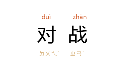 ⒉ 现亦借指某些体育运动项目(如乒乓、棋类等)中双方交锋。
