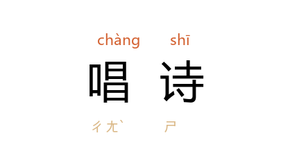 引唐 李贺 《秋来》诗:“秋坟鬼唱 鲍 家诗,恨血千年土中碧。”巴金 《春天里的秋天》八:“‘ 瑢,我爱你,我永远爱你,我爱你甚于一切,’我像唱诗般地自言自语。”