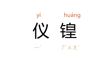引《新唐书·仪卫志上》:“黄麾仗,左右厢各十二部十二行……第二行,仪鍠,五色旛。”宋 王应麟 《玉海·车服三·仪仗》:“仪鍠,鉞属, 秦 汉 有之, 唐 用为仪卫。”明 张四维 《双烈记·策勋》:“卤簿驾头先设。五门五岳仪鍠。”亦称“仪鍠斧”。 《元史·舆服志二》:“仪鍠斧,制如斧,刻木为之,柄以朱,上缀小锦旛,五色带。”