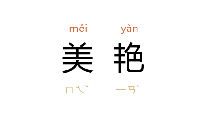 引《左传·桓公元年》:「宋华父督见孔父之妻于路,目逆而送之曰:『美而艳。』」《初刻拍案惊奇·卷一八》:「富翁偷眼看去,果然生得丰姿美艳,体态轻盈。」