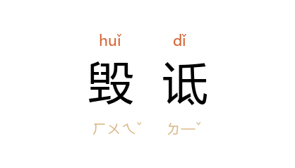 引《旧唐书·裴延龄传》:“延龄 ……尤好慢駡,毁詆朝臣,班行为之侧目。”宋 叶适 《故枢密参政汪公墓志铭》:“叶义问,故人也,有隐憾,上章毁詆,夺学士。”《续资治通鉴·元世祖至元二十八年》:“帝怒,谓其毁詆大臣,命左右批其颊。”
