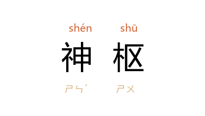 ⒊ 中枢,枢纽。