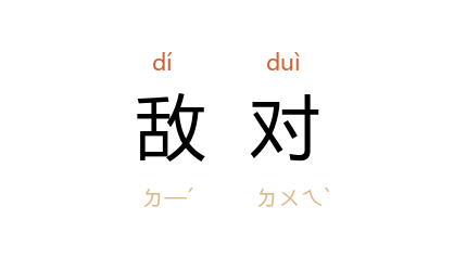 ⒈ 彼此因利害相冲突,或所据立场不同,而采取的一种对抗,甚或仇视的态度。