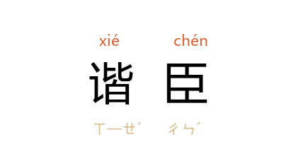 引《新唐书·元结传》:“谐臣顐官,怡愉天颜。”清 叶名沣 《桥西杂记·黄忠端公书<孝经>册》:“如此,则素相素臣,皆无復七世观德之事,谐臣媚子,久据有明德啟免之长矣。”清 厉荃 《事物异名录·品术·乐工》:“谐臣,諢官。 《唐书》:乐工曰谐臣、諢官。”