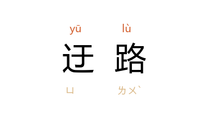 引《书·汤誓序》“伊尹 相 汤 伐 桀,升自陑” 唐 孔颖达 疏:“言陑,当是山阜之地,歷险迂路,为出不意故也。”明 徐弘祖 《徐霞客游记·滇游日记五》:“迂路两日,往 姚安府,以此路差可行,不必待衙子也。”《东周列国志》第八八回:“令兄有书託某送到 鬼谷,闻贵人已得仕 魏 邦,迂路来此。”