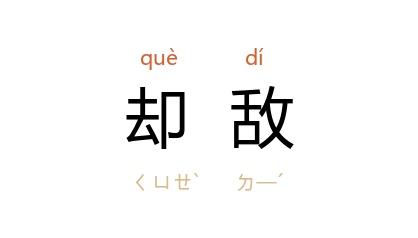 引《尸子·劝学》:“今非比志意也,比容貌;非比德行也,而论爵列,亦可以却敌服远矣。”《史记·樊郦滕灌列传》:“﹝ 樊噲 ﹞西至 酈,以却敌,斩首二十四级,捕虏四十人,赐重封。”宋 陆游 《上殿札子》二:“寇準 气吞丑虏,故能成却敌之功。”《前汉书平话》卷下:“细柳将军 北戍雄,阵前却敌谈笑中。”
