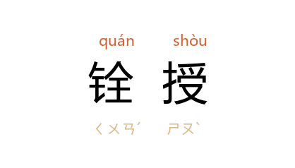 引《北齐书·高叡传》:“须拔 进居蝉珥之荣,退当委要之职,自昔以来,实未闻如此銓授。”《新唐书·选举志下》:“侍中 裴光庭 兼吏部尚书,始作循资格,而贤愚一概,必与格合,乃得銓授。”