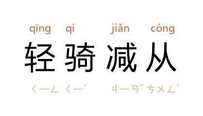 亦作“轻骑减从”、“轻骑简从”。 徐兴业 《金瓯缺》第二章一:“事前他没有通过正常手续预告自己的行踪,他打算轻骑减从、不惊动大家地来到军部。”