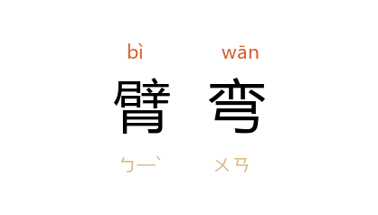 引茅盾 《子夜》一:“袖口缩在臂弯以上,露出雪白的半只臂膊。”杨沫 《青春之歌》第一部第五章:“她疲惫的朦胧的意识已经分辨不清,只是下意识地从那个人的臂弯里挣脱出来,无力地倒在沙滩上。”