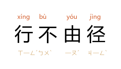 后以“行不由径”比喻为人正直或举止端方。 《史记·伯夷列传》:“或择地而蹈之,时然后出言,行不由径,非公正不发愤,而遇祸灾者,不可胜数也。”