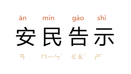 ⒈ 原指新官上任或社会发生动乱之后官府张贴的安定民心的布告。