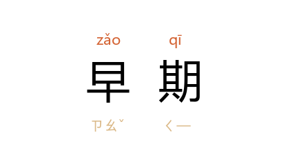 ⒈ 一个时代、一个过程或一个人一生的最早阶段。
