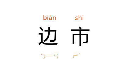 ⒈ 指边地少数民族或境内外边民的贸易市场。 明 汤显祖 有《边市歌》。
