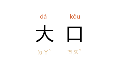 英语big mouthful (of food, drink, smoke etc), open mouth, gulping, gobbling, gaping