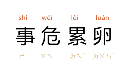 ⒈ 事情危险得像堆起来的蛋一样。形容局势极端危险。