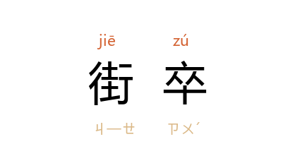 引《后汉书·独行传·范式》:“友人 南阳 孔嵩,家贫亲老,乃变姓名,佣为 新野县 阿里 街卒。”宋 刘攽 《送焦千之序》:“夫 东西汉 之时,贤士长者未尝不仕郡县也。自曹掾、书史、驭吏、亭长、门干、街卒、游徼、嗇夫,尽儒生学士为之,才试於事,情见於物,则贤不肖较然。”