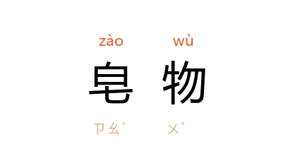 ⒈ 亦作“皁物”。柞栗之类。可做黑色染料。