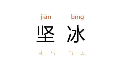 ⒈ 《易·坤》:“初六,履霜坚冰至。像曰:履霜坚冰,阴始凝也;驯致其道,至坚冰也。”
