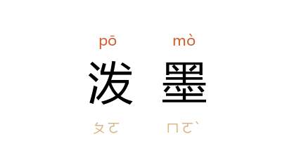 ⒈ 中国画的一种画法,将墨挥洒在纸或绢上。墨如泼出,画面气势奔放。