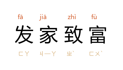 引魏巍 《东方》第三部第一章:“这个村子里的‘大能人’,更关心的却是个人的发家致富。”李古北 《农村奇事》二:“他多么渴望换条好牲口来把地种好,发家致富啊。”沙汀 《祖父的故事·某镇纪事》:“二十年来,我们有许多身份不同的人都在做过这种好梦,几乎成了大家发家致富的唯一出路了。”
