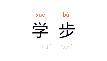 ⒉ (小孩)学习走步。亦比喻学习做,学习从事。