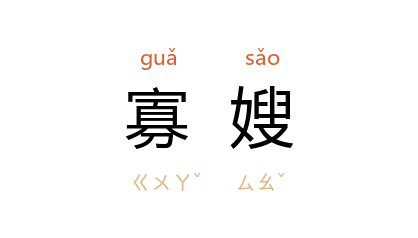 引《汉书·王莽传上》:“﹝ 莽 ﹞事母及寡嫂,养孤兄子,行甚敕备。”宋 欧阳修 《太尉文正王公神道碑铭》:“公事寡嫂谨,与其弟 旭 相友悌尤篤。”《红楼梦》第四回:“因见 王夫人 事情冗杂,姐妹们遂出来,至寡嫂 李氏 房中来了。”