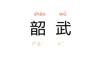 引《论语·八佾》:“子谓《韶》,‘尽美矣,又尽善也。’谓《武》,‘尽美矣,未尽善也。’”朱熹 集注:“《韶》, 舜 乐;《武》, 武王 乐。”汉 王充 《论衡·自纪》:“閭巷之乐,不用《韶》《武》。”《晋书·忠义传论》:“兰桂异质而齐芳,《韶》《武》殊音而并美。”