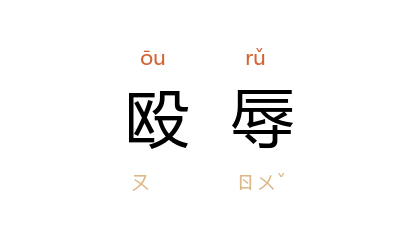 引清 黄六鸿 《福惠全书·刑名·自尽》:“妇人自尽,或姑严而殴辱时加,或夫忍而寡刻相待。”郭沫若 《南京印象》十三:“他们是为和平请愿而来,生死都已置诸度外。虽然受了狠心者的殴辱,但也并不想向法庭起诉。”