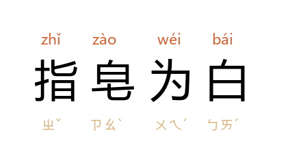 ⒈ 皂,黑色。指皂为白,意指混淆黑白,颠倒是非。元·武汉臣也作「指黑为白」。