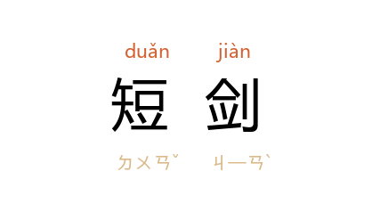 引《汉书·邹阳传》“匕首窃发” 唐 颜师古 注:“匕首,短剑也。其首类匕,便於用也。”元 杨载 《送侯尊师归蜀》诗:“飘飘携短剑,杳杳泛灵槎。”清 蒋春霖 《蝶恋花·北游道上》词:“鸦背残霜侵短剑,纸窗梦破疏灯颭。”