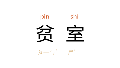 引汉 王充 《论衡·偶会》:“故军功之侯,必斩兵死之头;富家之商,必夺贫室之财。”宋 程颐 《先公太中家传》:“每岁春首,兴役治河,民閒自秋成则为之备,贫室尚患不及。”清 唐孙华 《三月十五日创建育婴堂纪事二十四韵》:“贫室憎疣赘,豪家即掌珠;岂缘心独忍,直为口难餬。”