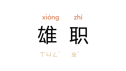 引《后汉书·盖勋传》:“此人明智有餘,然不可假以雄职。”《旧唐书·忠义传上·王义方》:“未几,又拜臣侍御史,滥朝廷之雄职。”宋 洪迈 《容斋四笔·台谏分职》:“乃詔臺官、供奉官共道路,听先后行,相值则揖,然则居此二雄职者,在 唐 日了不相谋云。”