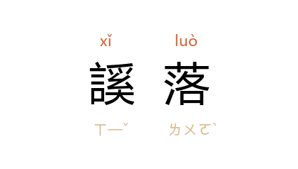 ⒈ 讥讽,嘲笑。 清 翟灏 《通俗编·言笑》:“謑落:《荀子·非十二子篇》:‘无廉耻而任謑訽’按:謑,谓詈辱也。