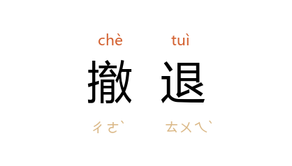 ⒈ 从战场或冲突地方撤回,从阵地或占领区退出。