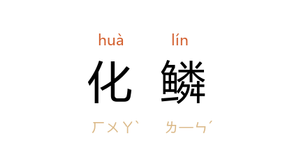 引唐 刘得仁 《上姚谏议》诗:“终计依门馆,何疑不化鳞。”明 叶显祖 《鸾鎞记·京晤》:“当年踪跡困泥尘,不意乘时亦化鳞。为报乡閭亲戚道,如今席帽已离身。”