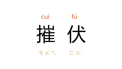 引《隋书·经籍志四》:“释迦 之苦行也,是诸邪道,并来嬲恼,以乱其心,而不能得。及佛道成,尽皆摧伏,并为弟子。”唐 玄奘 《大唐西域记·达罗毘荼国》:“如来 在昔於此説法,摧伏外道,广度人天。”《景德传灯录·释迦牟尼佛》:“以无心意无受行而悉摧伏诸外道。”奚侗 《辛亥岁暮杂诗》:“魔军摧伏休兵仗,青史都无贰负臣。”赵朴初 《原来是这样的不可思议》诗:“他摧伏了魔军,他得到了大解脱。”
