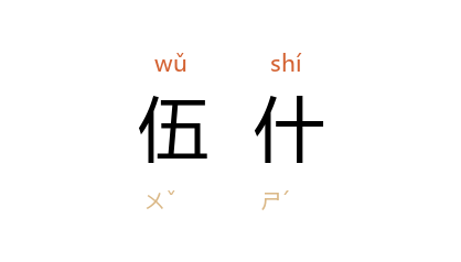 ⒈ 古代军队以五人为伍,二伍为什。后用以指部队。