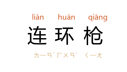 引太平天囯 洪仁玕 《资政新篇》:“以有用之物为宝,如……千里眼、量天尺、连环鎗、天球、地球等物,皆有夺造化之巧。”清 姚锡光 《台湾篇》:“倭 人惶急,以连环枪出击。”