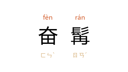 引《汉书·朱博传》:“齐郡 舒缓养名, 博 新视事,右曹掾史皆移病卧…… 博 奋髯抵几曰:‘观 齐 儿欲以此为俗邪!’”唐 王维 《为画人谢赐表》:“裂眥奋髯,髮衝鶡冠。”宋 苏轼 《京师哭任遵圣》诗:“奋髯走猾吏,嚼齿对姦将。”清 魏源 《陕西按察使赠布政使严公神道碑铭》:“及其驰骋上下,奋髯哆颐,沙聚数千里,龟灼数百世。”