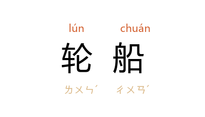 ⒈ 泛称借机械力推进的船舶。早期汽船未使用螺旋桨推进器之前,以轮叶式推进器推动,故称为「轮船」。
