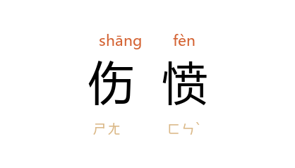 ⒈ 悲愤。 《三国志·吴志·张紘传》“出 紘 为 会稽 东部都尉” 裴松之 注引 三国 吴 韦昭 《吴书》:“初 琅邪 赵昱 为 广陵 太守,察 紘 孝廉, 昱 后为 笮融 所杀, 紘 甚伤愤,而力不能讨。
