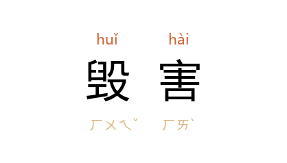 引《韩非子·六反》:“故名赏在乎私恶当罪之民,而毁害在乎公善宜赏之士,索国之富强,不可得也。”《史记·张丞相列传》:“或乃阴私相毁害,欲代之。”《南史·梁纪下·元帝》:“性好矫饰,多猜忌,於名无所假人。微有胜己者,必加毁害。”
