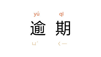 ⒉ 亦作“逾朞”。亦作“踰期”。超过所规定的限期;脱期。