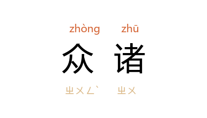 引唐 骆宾王 《代女道士灵妃赠道士李荣》诗:“千回鸟信説众诸,百过鶯啼説长短。”唐 张鷟 《游仙窟》:“女壻是妇家狗,打杀无文;终须倾使尽,莫漫造众诸。”